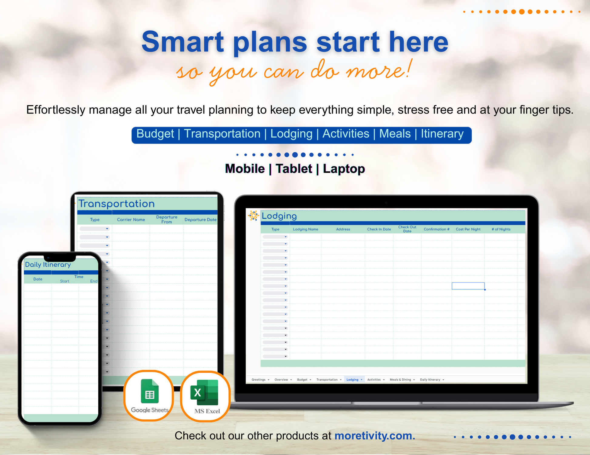 Greetings and Salutations! Welcome to Moretivity, your premier activity planning solution. Our Moretivity Travel Planning solution will help you effortlessly manage your travel from accommodations, to transportation and beyond, to keep your planning simple, stress free and at your finger tips.