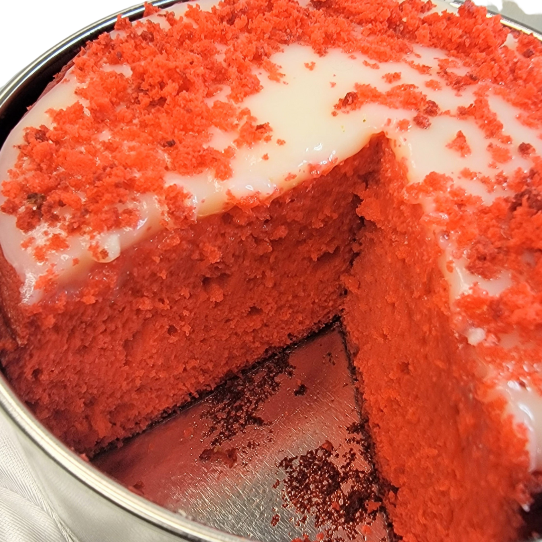 Our red velvety rum cake batter is finished with our white chocolate coconut ganache to make the ultimate epitome of sophistication - our PropeR ReD. This 6" masterpiece is drunk in the best white rum this side of the Tiddlyshire and is ready to be savored by you.